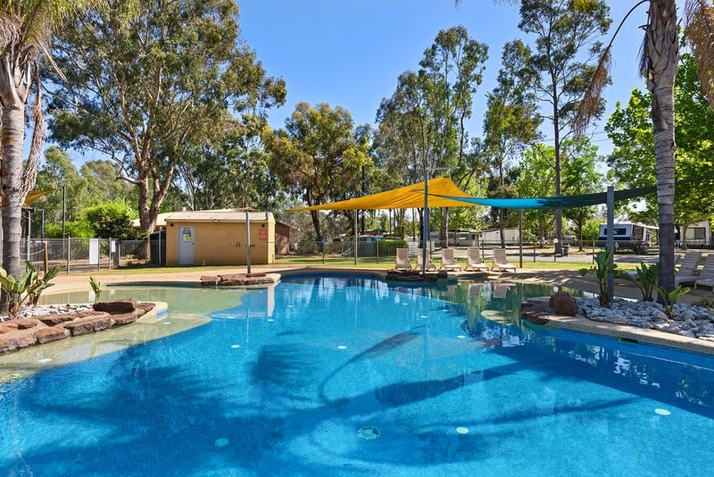 Discovery Parks - Moama West is located beside the Murray River on 10.5 hectares of natural bushland. Guests can relax by the swimming pool and barbecue area.