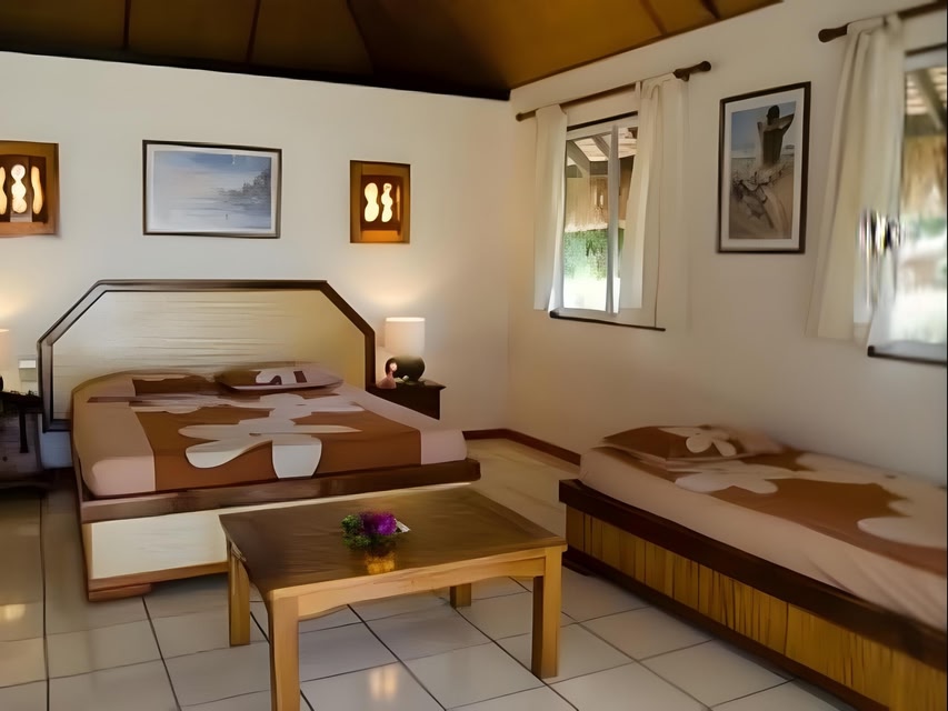 Great care is taken to ensure guests experience comfort through top-notch services and amenities.Remain linked during your visit by utilizing the complimentary internet access available.Discovering Moorea Island becomes even more accessible, thanks to the car hire amenities provided at the hotel. The hotel offers complimentary parking for guests who arrive with their own mode of transport.Effortlessly plan your daily activities and travel requirements with concierge service, luggage storage and safety deposit boxes provided by the front desk services. Securing passes to the city's top attractions is simple with the hotel's ticket service and tours.Need some relaxation? Your room features daily housekeeping to make your stay even more comfortable and enjoyable.The hotel is completely smoke-free.Crafted for coziness, every guestroom provides an array of features, guaranteeing a tranquil night's sleep while maintaining the level of comfort. At Les Tipaniers Hotel, a selection of rooms can be found that showcase unique design elements such as a balcony or terrace.Rest assured that your hydration needs will be met, as some guestrooms are equipped with a refrigerator and a coffee or tea maker.Maintain your cleanliness and feel revitalized using a hair dryer available in select guest restrooms. Each morning at Les Tipaniers Hotel, a scrumptious, homemade breakfast kick-starts the day.During your visit, indulge in a range of delightful culinary choices at hotel to enhance your experience.Experience a fantastic evening effortlessly! Relish an entertaining night without venturing beyond the confines of the bar.Indulge in the numerous pursuits available at Les Tipaniers Hotel. During your stay, the hotel provides direct access to a beach, ensuring you remain near the sea throughout your visit.