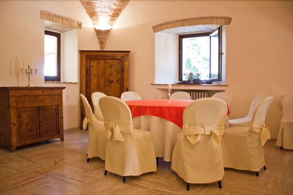 Hotel Overview: Nestled in the serene countryside of Fermo, Tenuta SantElisabetta combines luxury with sustainability. This eco-friendly hotel boasts a stunning architectural design that blends seamlessly with its natural surroundings, making it a haven for those who appreciate both luxury and environmental consciousness. Accommodations: Tenuta SantElisabetta caters to a variety of travelers with its richly appointed rooms and suites. Guests can enjoy a comfortable stay in one of the 7 elegantly appointed guestrooms. Each room at Tenuta SantElisabetta is uniquely designed to offer supreme comfort and elegance. Guests can choose from a variety of room types including standard rooms, deluxe rooms, and suites. All accommodations feature plush bedding, marble bathrooms equipped with premium toiletries, and breathtaking views of the lush gardens or the tranquil pool area. Modern amenities such as high-speed Wi-Fi, flat-screen TVs, and minibars are standard in every room. Amenities: Tenuta SantElisabetta offers an array of top-tier amenities including concierge service, valet parking, private cabana rentals by the poolside for exclusive relaxation, and fully equipped business centers. VIP services such as butler service and limousine rentals are also available to enhance the luxury experience. Dining Options: Guests at Tenuta SantElisabetta can indulge in an exquisite culinary journey across multiple dining venues on-site. The main restaurant serves traditional Italian cuisine crafted by Michelin-starred chefs while emphasizing organic ingredients sourced locally. Exclusive dining experiences such as wine pairings or private candlelit dinners can be arranged upon request. The hotel also offers expansive breakfast options and round-the-clock room service. Nearby Location & Transportation: The hotel is conveniently located 15 kilometers from Fermo’s main train station and 55 kilometers from Ancona Airport, making it easily accessible for both international and domestic travelers. Nearby Attractions: Teatro dell'Aquila - A historic theater located 10 kilometers away offering regular performances in a majestic setting. Fermo Cathedral - Just 11 kilometers from the hotel, this cathedral stands as a testament to Romanesque architecture. Wellness And Activities: The wellness center at Tenuta SantElisabetta provides a sanctuary for rejuvenation with facilities like a state-of-the-art fitness center open 24/7, luxurious spa offering signature treatments using organic products, Disclaimer notification: Amenities are subject to availability and may be chargeable as per the hotel policy.