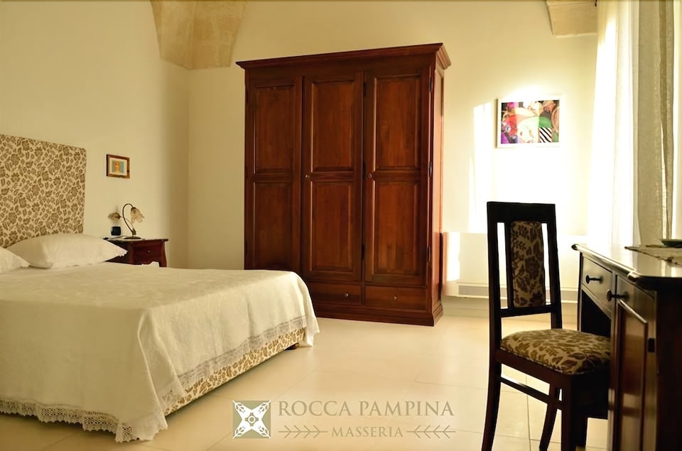 Hotel Overview: Nestled in the serene landscape of Mottola, Masseria Rocca Pampina stands as a beacon of luxury and sustainability. This hotel not only promises an elite stay but also champions eco-friendly practices, marrying modern comfort with environmental consciousness. Accommodations: Masseria Rocca Pampina caters to a variety of travelers with its richly appointed rooms and suites. Guests can enjoy a comfortable stay in one of the 4 elegantly appointed guestrooms. Each of the four guestrooms at Masseria Rocca Pampina offers an unparalleled blend of luxury and comfort. Rooms feature king-sized beds adorned with premium bedding, marble bathrooms equipped with rain showerheads, and exclusive toiletries. Modern amenities include complimentary Wi-Fi, flat-screen TVs, and minibars. Guests can enjoy stunning views from their private balconies overlooking lush gardens or the expansive pool area. Amenities: Masseria Rocca Pampina offers a range of top-tier amenities including concierge services, valet parking, private cabana rentals by the poolside, a fully-equipped business center for professionals on the go, and VIP services such as butler or limousine rentals tailored for discerning guests. Dining Options: Dining at Masseria Rocca Pampina is a culinary journey led by acclaimed chefs in multiple dining venues including a main restaurant that serves local cuisine with innovative twists. Guests can savor dishes made from locally-sourced ingredients or partake in exclusive experiences like wine pairings or tasting menus. The hotel also boasts exquisite rooftop dining that offers panoramic views alongside delectable meals. Nearby Location & Transportation: The hotel is conveniently located just 42 kilometers from Castellana Caves and approximately 44 kilometers from Sassi and the Park of the Rupestrian Churches. The nearest airport is accessible within a short drive, providing ease of travel for both international and domestic guests. Nearby Attractions: Castellana Caves - 42 km: Explore these renowned caves known for their breathtaking stalactite formations. Sassi di Matera - 44 km: Visit this iconic ancient town famous for its cave dwellings carved into limestone. Wellness And Activities: The wellness center at Masseria Rocca Pampina includes state-of-the-art spa facilities offering signature treatments like hydrotherapy sessions tailored to rejuvenate mind and body. Fitness enthusiasts can maintain their routines in our well-appointed gym featuring personal trainers or join yoga classes held amidst serene settings around our tranquil pool area. Policies & Check-In Instructions: Guests are advised to contact the property ahead of time using information on the booking confirmation for check-in arrangements especially if arriving after designated hours. Extra-person charges may apply depending on property policy. This property accepts cash payments only. Special requests are subject to availability upon check-in and may incur additional charges; special requests cannot be guaranteed. Please note that cultural norms and guest policies may differ by country; provided policies are typical for this property. Summary: Masseria Rocca Pampina epitomizes luxurious living set against an idyllic backdrop in Mottola. This upscale retreat is perfect for families seeking tranquility or business travelers needing efficient service close to major hubs Disclaimer notification: Amenities are subject to availability and may be chargeable as per the hotel policy.