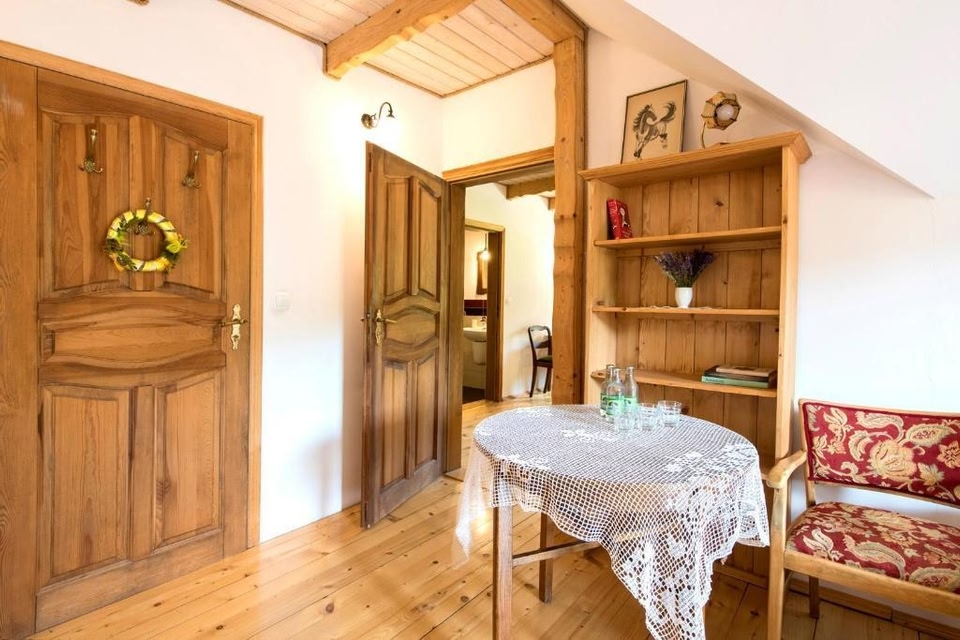 Mountain Views and Family-Friendly AccommodationExperience breathtaking mountain views at Pensjonat pod Górą Karczmisko. With family rooms and units featuring balconies with outdoor dining areas, your stay will be both comfortable and scenic.Relaxation and RecreationUnwind in the hot tub or garden after a day of skiing, cycling, or hiking. The indoor play area is perfect for children, while the outdoor fireplace provides a cozy atmosphere for all guests to enjoy.Convenience and ComfortEnjoy free WiFi, free private parking, and an on-site minimarket for added convenience. Whether you're seeking allergy-free units or simply looking to relax in the shared lounge area, Pensjonat pod Górą Karczmisko has everything you need for a memorable stay.Book your stay now at Pensjonat pod Górą Karczmisko and make unforgettable memories in Konradów.