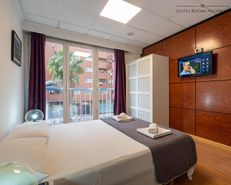 Offering accommodation with free WiFi, air conditioning and flat-screen TV, Suites Rooms Valencia is set 2 km from Central Market of Valencia and 2.4 km from Basilica de la Virgen de los Desamparados. Guests can also relax in the shared lounge area.