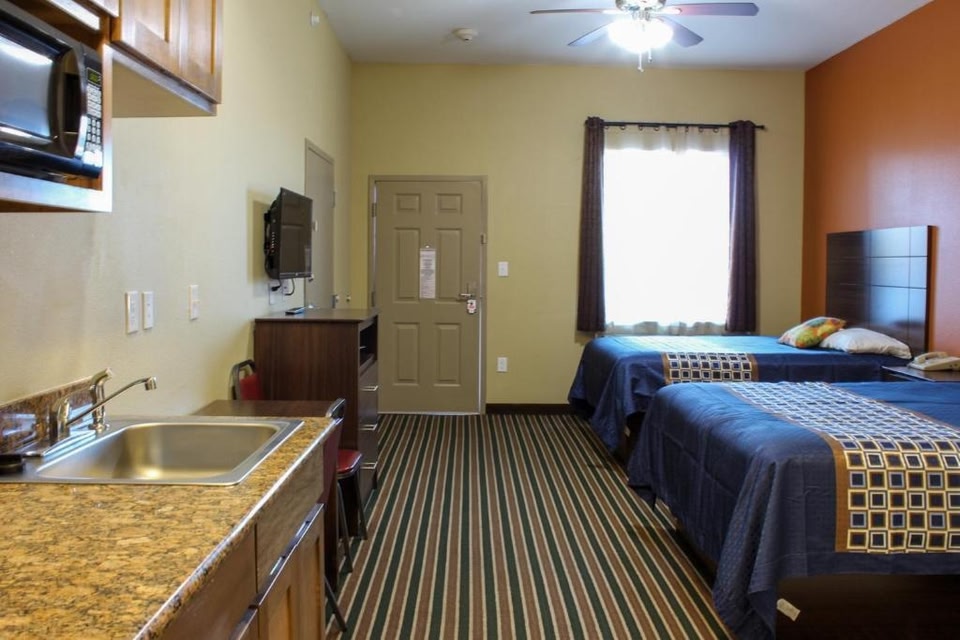 Texas Bungalows Hotel & Hotel Que at Lakeline Austin Cedar Park is located in Cedar Park. A work desk and sofa are provided in each room at The Bungalows Hotel. There is a full kitchen with a microwave, refrigerator, coffee machine and toaster.