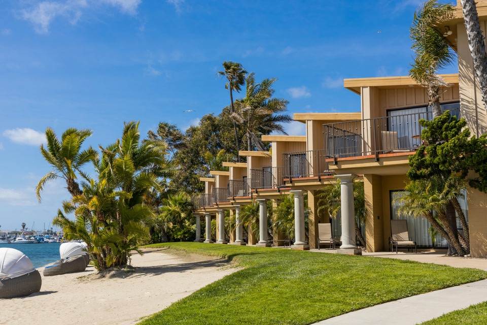 This San Diego hotel overlooks Mission Bay and is a 5-minute drive from SeaWorld. The hotel offers asecluded beach, outdoor swimming pool and 30-person hot tub. Bahia Resort Hotel features free Wi-Fi and cable TV in every guest suite.